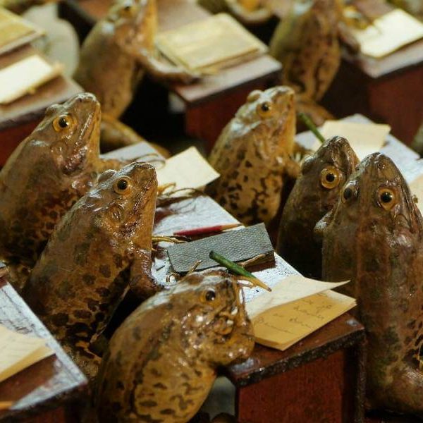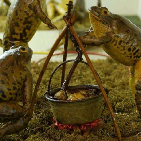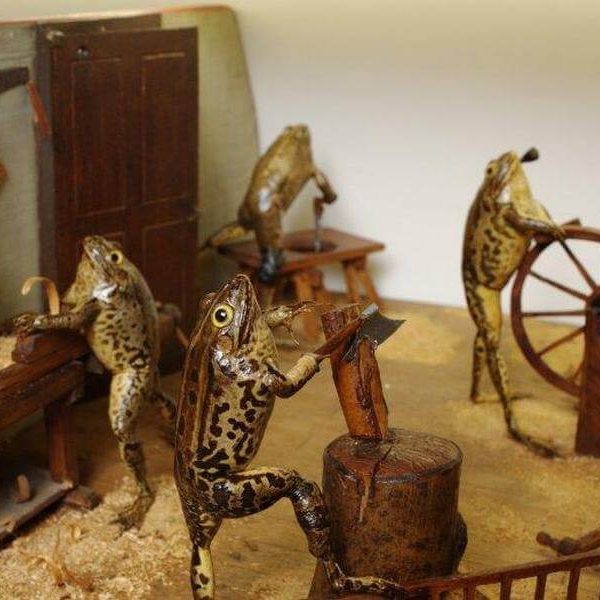 Kolekcija se sastoji od 21 eksponata u kojima su žabe smještene tematski te prikazuju razne životne teme. Kroz 10 godina strpljivog, zahtjevnog i veoma zagonentnog načina prepariranja Ferenc Mere postao je otac unikatne kolekcije koja je sto godina nakon svog postanka i dalje ostala najveća i najbolja takva kolekcija na svijetu. On je do najstinijeg detalja uspio prikazati svakodnevicu ljudi kroz prikaze kovačnice, stolarske radionice, krojačnice, škole, cirkusa i još mnogo različlitih životnih scena.